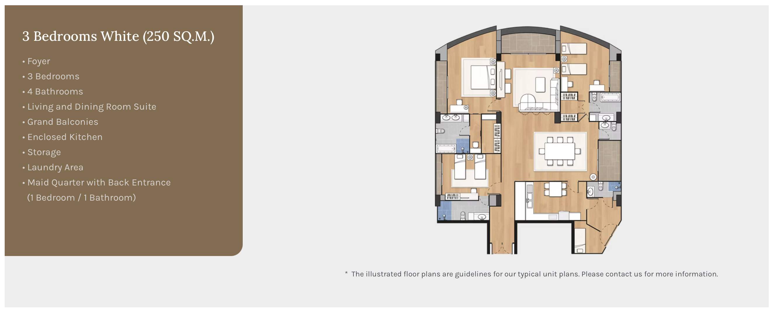 The apartment features a welcoming foyer, a large living and dining room suite, and grand balconies with open city views. The enclosed kitchen is fully equipped, with a storage arealaundry space, and a maid’s quarter complete with a private back entrance and its own bedroom and bathroom — ensuring both convenience and privacy for residents.