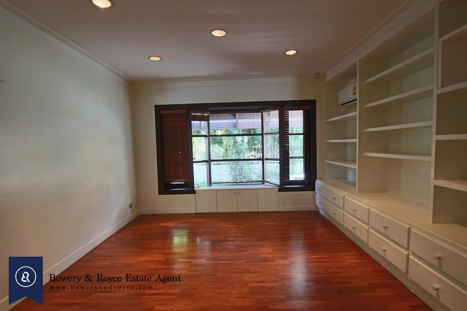 With this Beautiful Four Bedrooms Villa for Rent in Ekkamai, the garden and house blend together in happy harmony and a tranquil pool add to the appeal of this beautiful home. The property consists of four bedrooms with plenty of room for study, sleep and storage, four and a half luxurious bathrooms, and a kitchen that flows through to the dining room. The expansive living room separate formal and informal living areas are a feature of this home. The master bedroom, complete with walk-in closet and ensuite, ensures parents have a private space where they can enjoy the garden views from their own space.