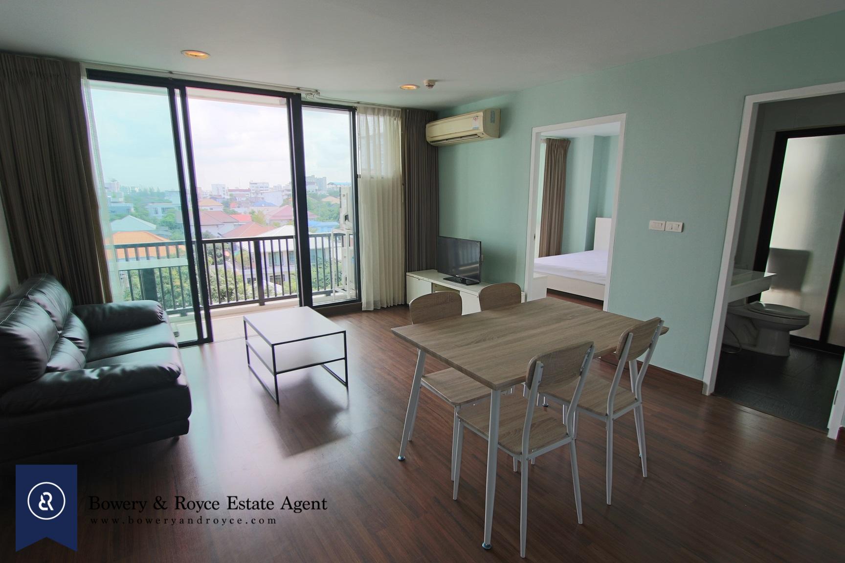 คอนโดห้องหัวมุมที่สว่างและโปร่งสบายให้เช่าในเอกมัย โรงแรมแห่งนี้ตั้งอยู่ในทำเลสะดวกใกล้กับโรงเรียนการคมนาคมและร้านอาหาร