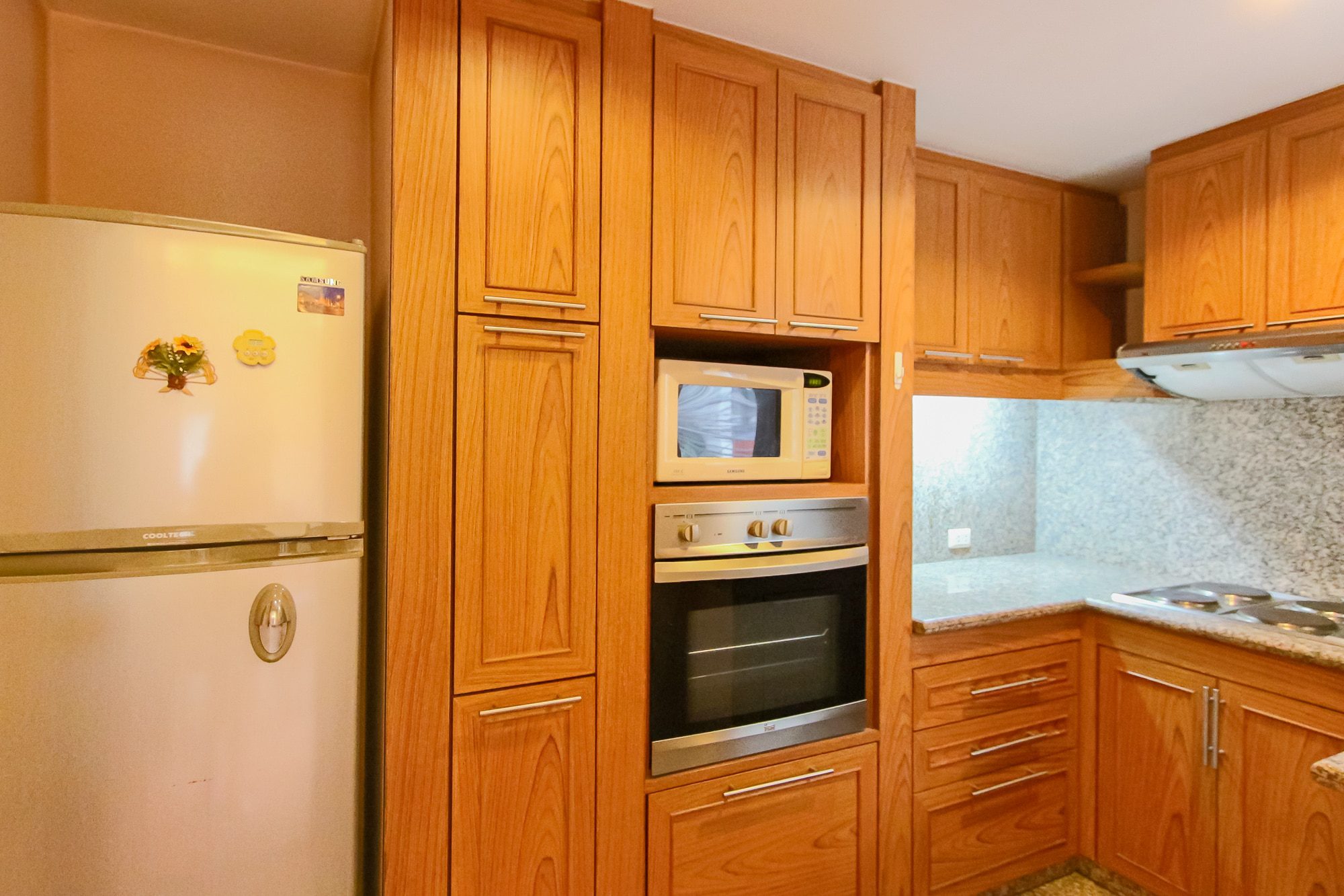 ห้องนี้ไม่เพียงแต่จะอยู่ในทำเลที่ดีแต่ยังมีขนาดพื้นที่ห้องที่ใหญ่กว้างขวางอีกด้วย เปรียบเทียบกับราคาค่าเช่า ห้องนี้ถือว่าเป็นหนึ่งในห้องที่คุ้มที่สุดในย่างนี้เลยทีเดียว ยูนิตนี้มาพร้อมกับสองห้องนอน สองห้องน้ำ ห้องนั่งเล่นที่รวมพื้นที่รับประทานอาหารให้ด้วย ห้องครัวประกอบไปด้วยตู้เย็น เตาอบ (หายากสำหรับราคานี้) ไมโครเวฟ ครบครัน ห้องนอนใหญ่มีห้องเสื้อผ้าเป็นสัดส่วน และมีห้องนำ้ในตัว แยกอ่างอาบน้ำ และ พื้นที่ฝักบัว  ห้องนอนที่สองเป็นเตียงใหญ่ขนาดควีนไซต์ และมีตู้บิวท์อินท์เช่นกัน สะอาด โปร่งโล่ง กว้างขวางเหมาะกับทุกคนจริงๆ
