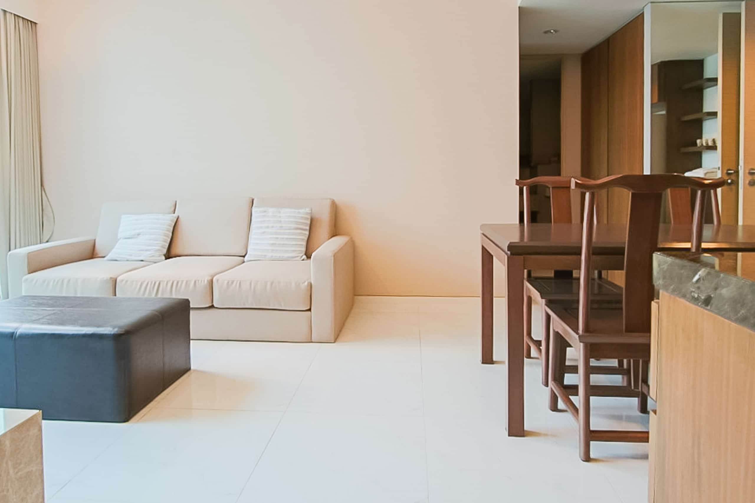 ห้องนี้ใช้งานได้ดีสะดวกสบายและกว้างขวาง ออกแบบเพื่อให้เหมาะกับทุกโอกาส ไม่ว่าจะเป็นการบันเทิงแขกของคุณ หรือการผ่อนคลายหลังจากทำงาน โต๊ะรับประทานอาหารสำหรับสี่ท่าน และสามารถเพิ่มได้อีกสองท่านได้อีกด้วย พื้นที่ที่เป็น open plan แบบนี้ ทำให้พื้นที่ส่วนของห้องนั่งเล่นมีขนาดใหญ่ที่สุด ห้องนอนใหญ่เป็นโอเอซิสแห่งความสงบและผ่อนคลายพร้อมตู้เสื้อผ้าแบบบิวท์อินและห้องน้ำที่หรูหรา ห้องนอนที่สองมีเตียงเดี่ยวพร้อมกับตู้เสื้อผ้าแบบ built-ins ห้องน้ำใช้รวมกับห้องนำ้แขกที่ตั้งอยู่ด้านนอกห้อง
