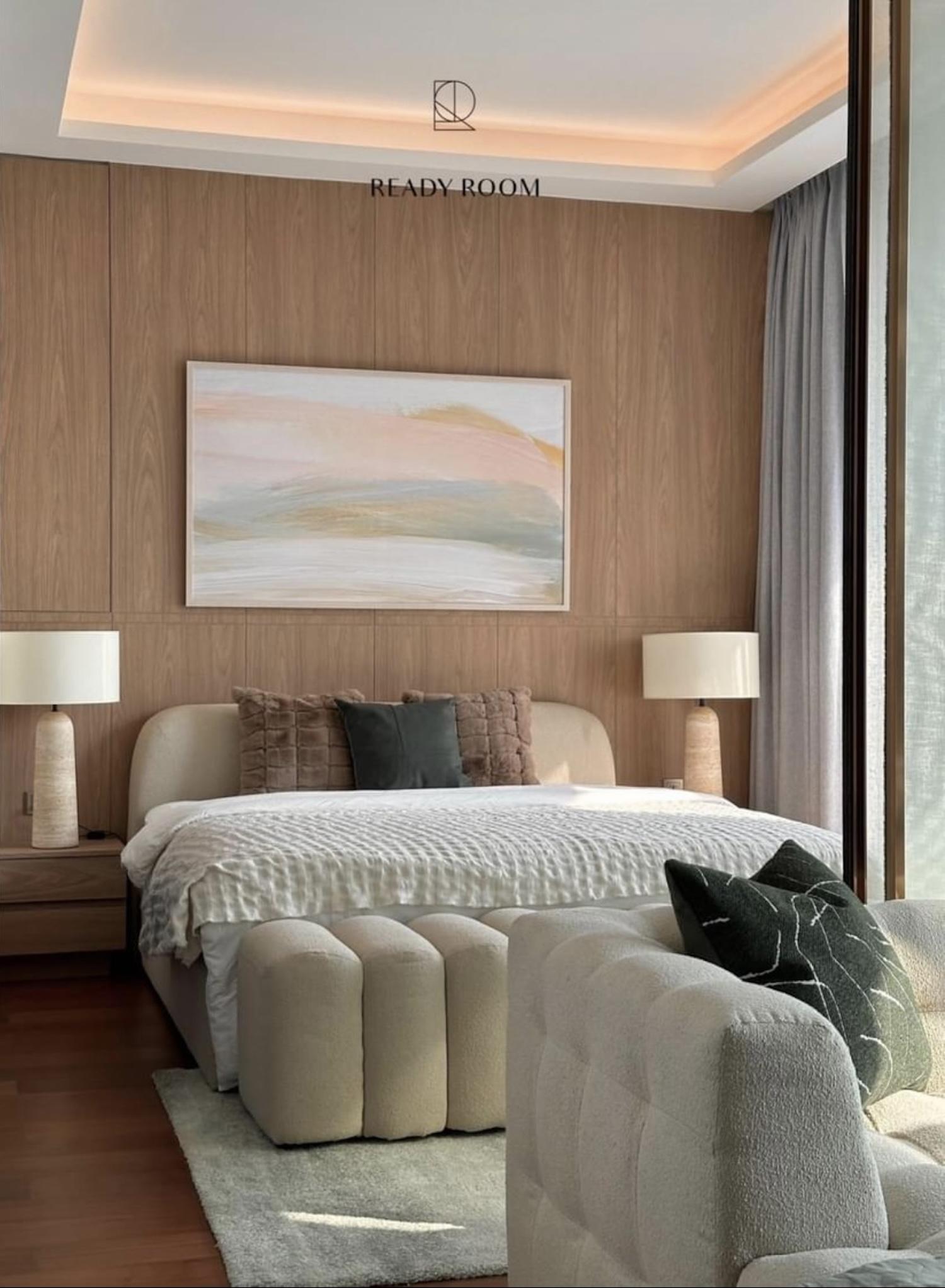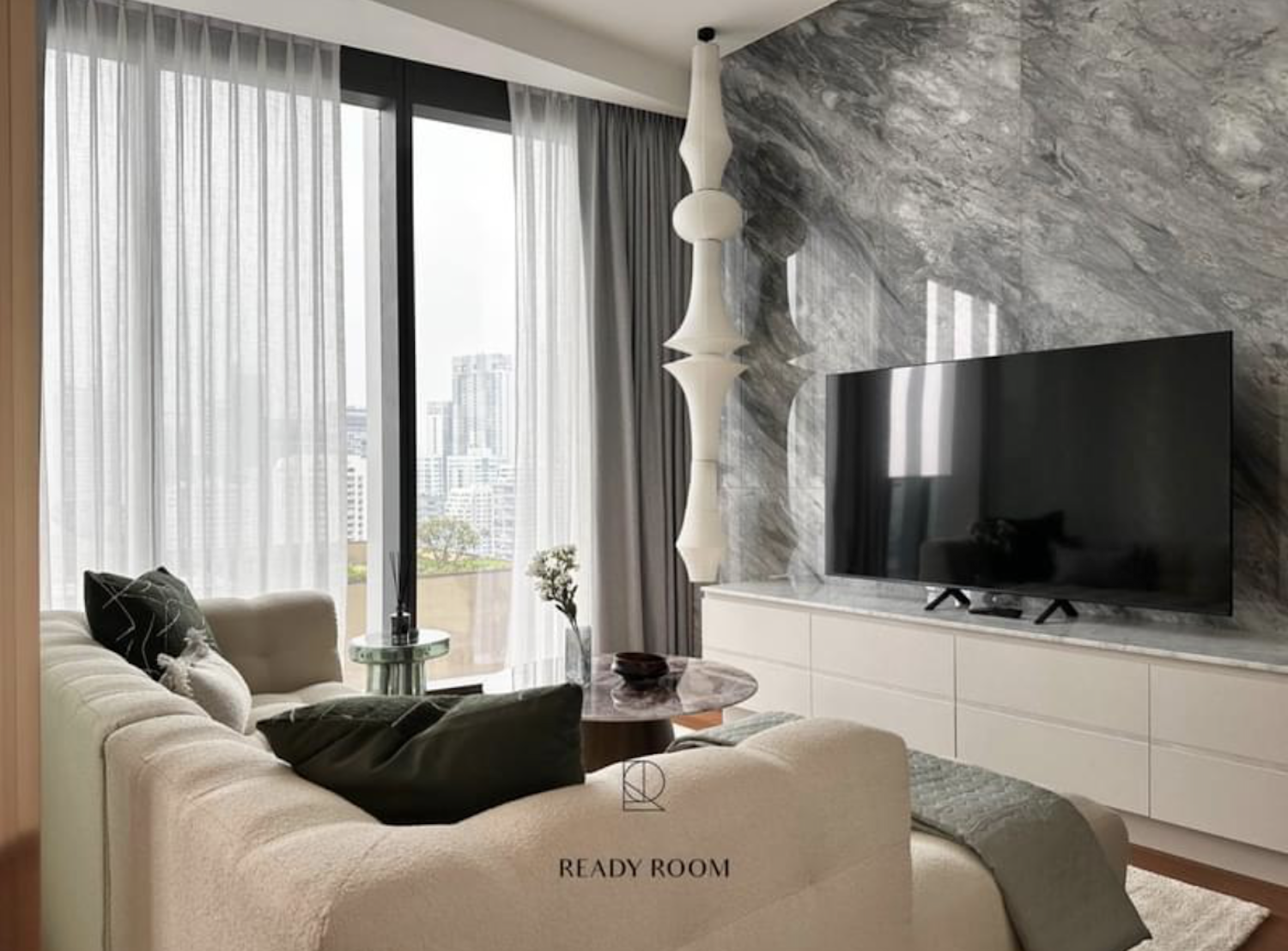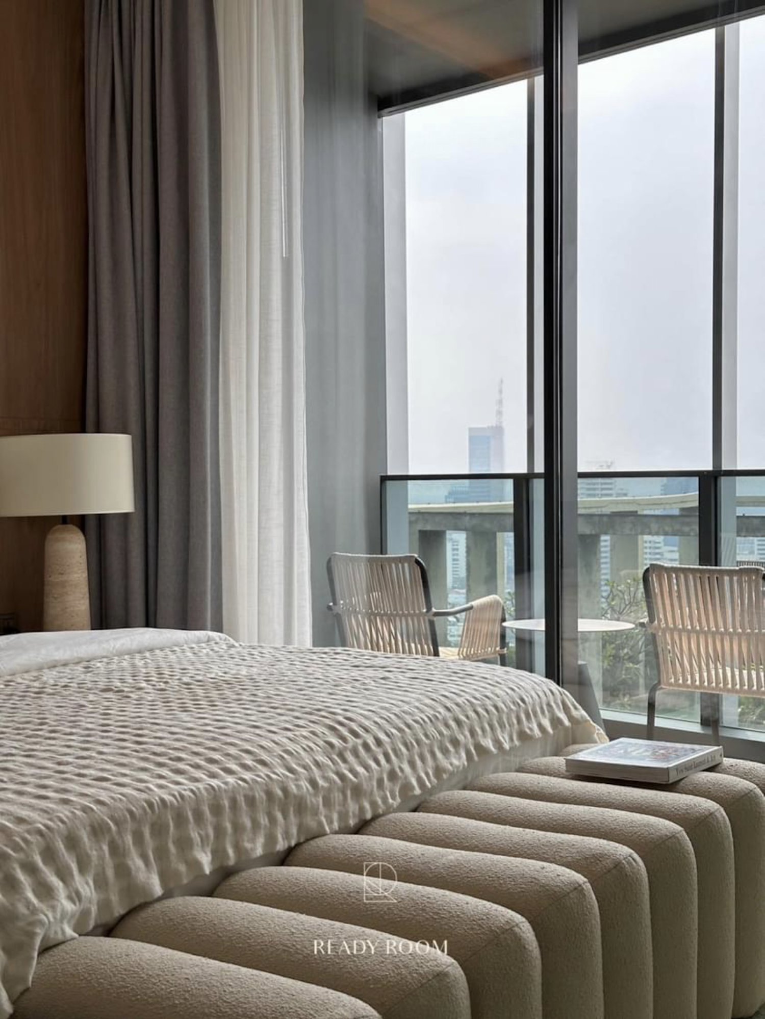 Perched on a high floor, this condo spans 58 square meters of meticulously designed space, fully furnished to cater to all aspects of modern living. The open-plan layout seamlessly integrates the living, dining, and kitchen areas, creating a spacious and welcoming atmosphere perfect for relaxation and entertaining guests. The living room, adorned with stylish decor, features a unique sliding door that elegantly separates it from the bedroom, ensuring privacy and tranquility.