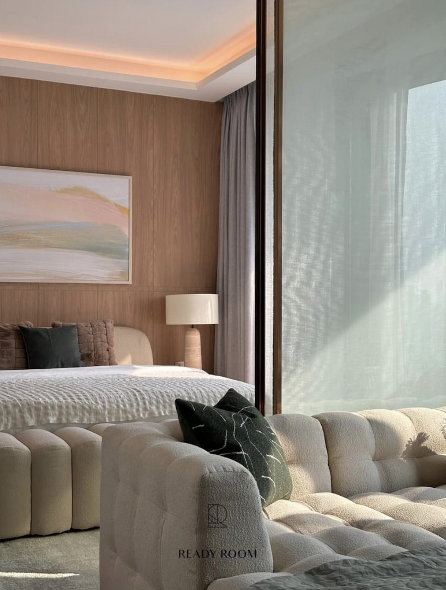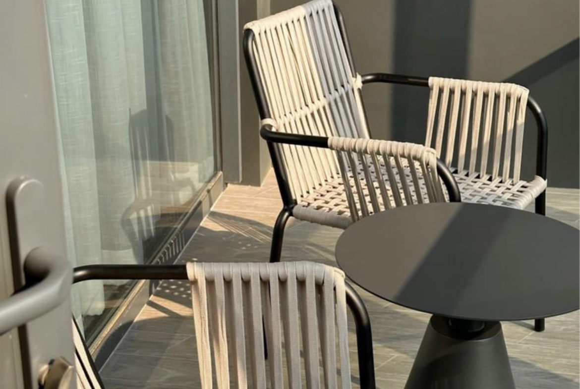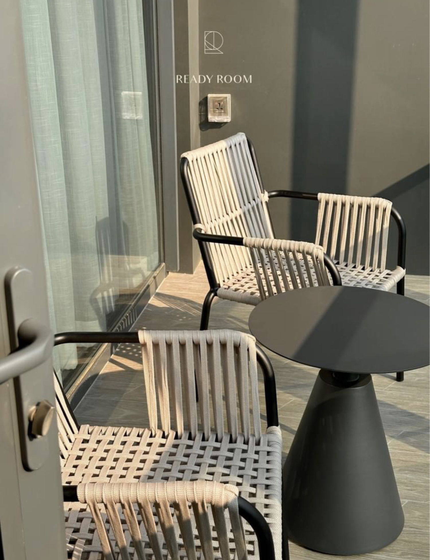 Step outside to the balcony directly from the living area and enjoy the serene outdoor seating setup, complete with a coffee table, ideal for morning coffees or evening relaxation.