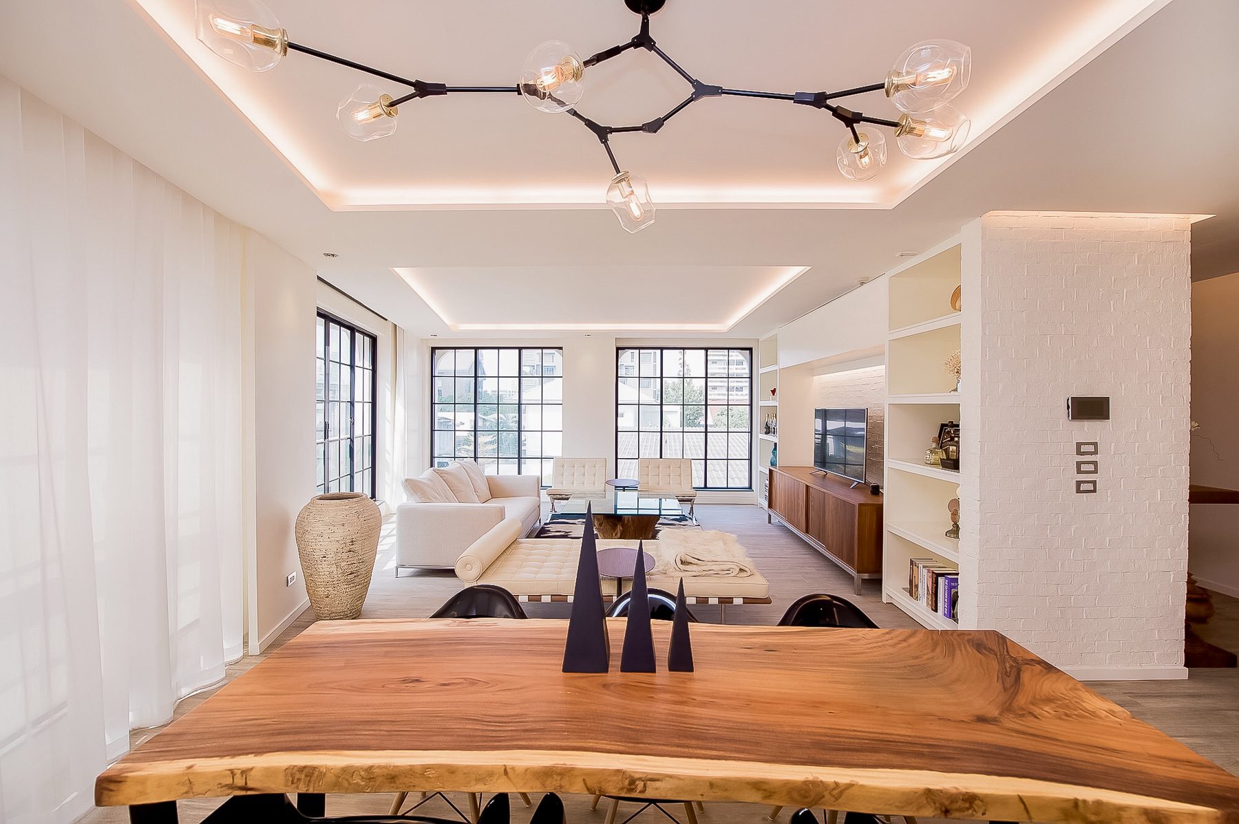ห้องเต็มไปด้วยแสงธรรมชาติที่เข้ามาทางหน้าต่างสไตล์ล๊อฟที่สวยงามและเป็นเอกลักษณ์ซึ่งช่วยให้แสงเข้ามาในห้องนั่งเล่นจากทางทิศเหนือทิศตะวันตกและทิศใต้เพื่อให้แน่ใจว่าห้องนั่งเล่นเปิดโล่งสว่างและไร้ที่ติ