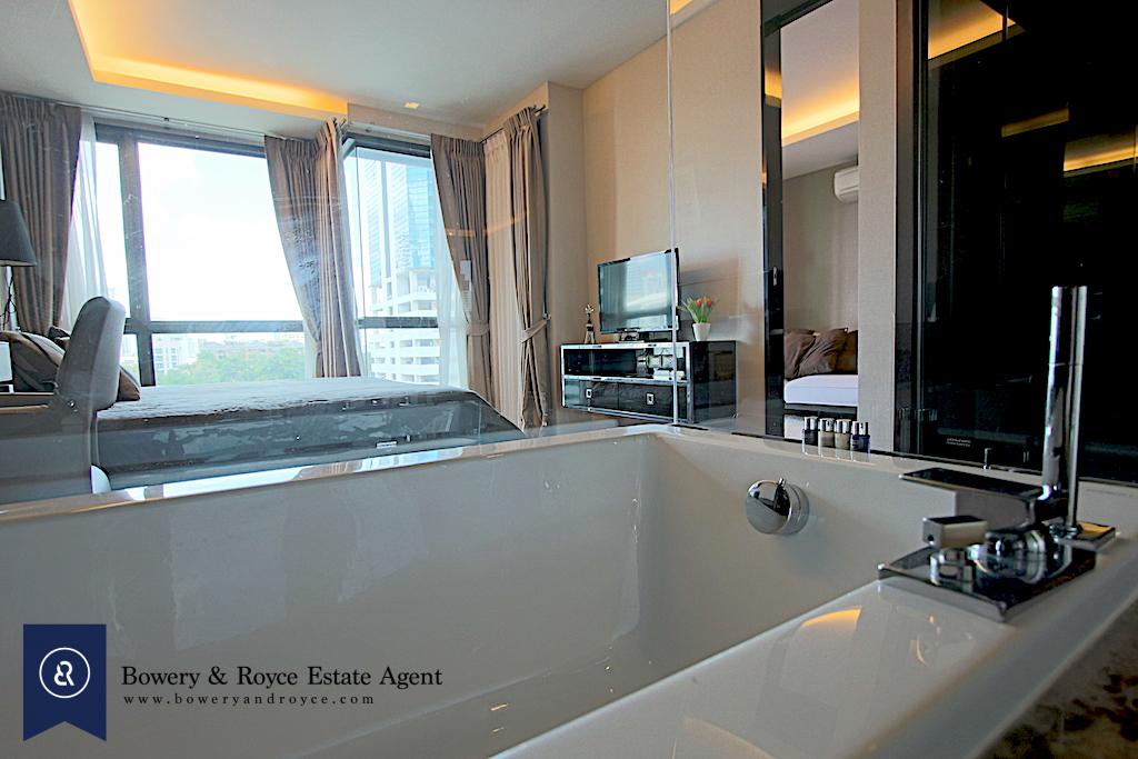 ห้องนี้มาพร้อมกับหนึ่งห้องนอนพร้อมห้องน้ำในตัว ห้องนั่งเล่นแบบเปิดโล่ง รวมพื้นที่รับประทานอาหารและห้องครัว ห้องนั่งเล่นมีระเบียงยื่นออกไปรับแสงแดดและวิวที่สวยงามสามารถมองหเห็นได้จากห้องนั่งเล่นและห้องนอน ตกแต่งให้ความรู้สึกหรูหราและทันสมัย ไฮไลท์ของคอนโดนี้รวมถึงห้องนั่งเล่นพร้อมโซฟา และชั้นเก็บของต่างๆมากมาย