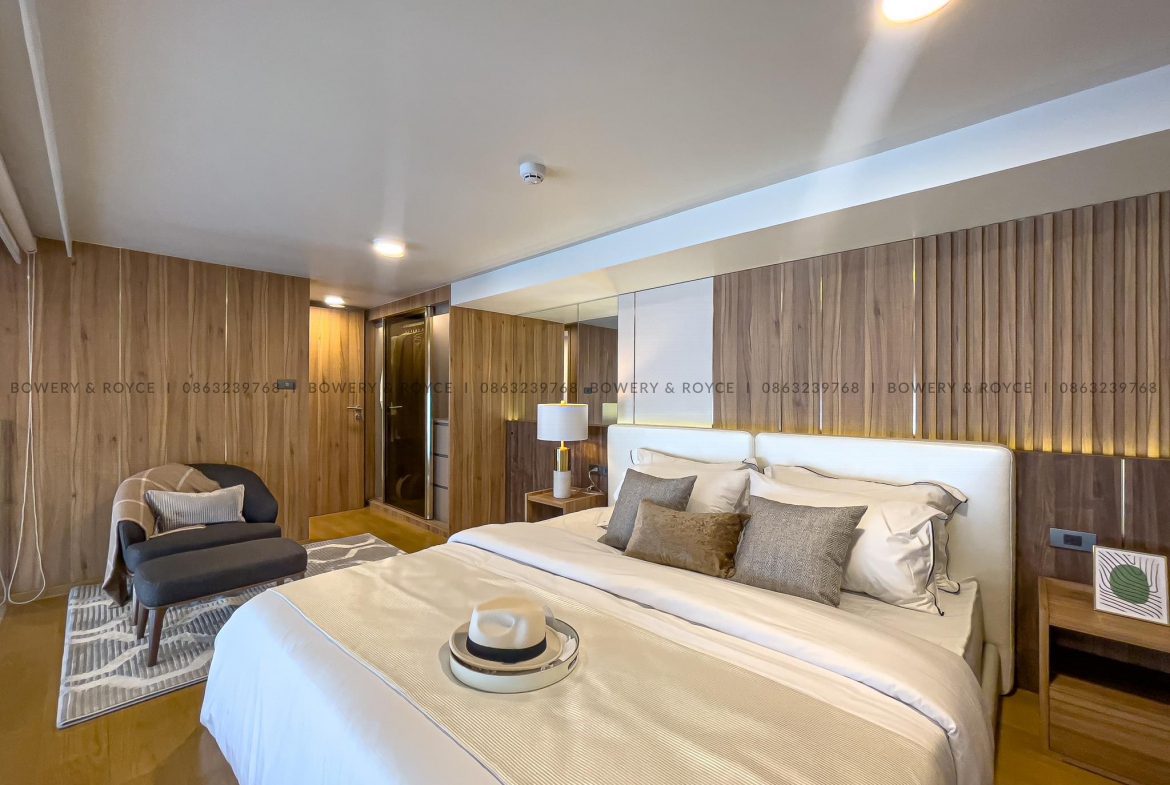 การตกแต่งภายในมีความสะดวกสบาย มาพร้อมกับ ห้องนอน 1 ห้อง ห้องน้ำ 2 ห้อง และพื้นที่ทำครัวที่ทันสมัย มีพื้นที่ประโยชน์ใช้สอยมากมาย ประตูกระจกบานเลื่อนตรงห้องนั่งเล่นสามารถเปิดออกไปยังระเบียงเพิ่มความรู้สึกโล่งโปร่งสบาย ห้องนอนที่หรูหราและกว้างขวาง สร้างแรงบันดาลใจให้กับการพักผ่อนด้วยห้องโต๊ะทำงานและพื้นที่เก็บของมากมาย ออกแบบมาสำหรับการนอนหลับตลอดทั้งวัน ตู้ที่สูงจากพื้นจรดเพดานทำให้เสื้อผ้าและอุปกรณ์เสริมพ้นสายตา