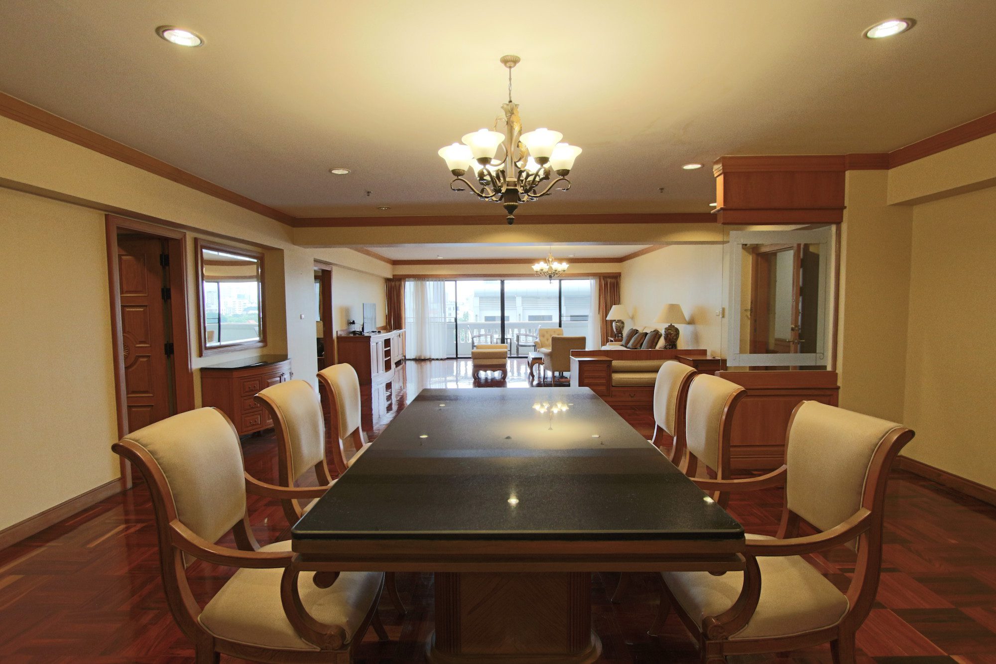 The facilities in this spacious four bedroom condo for Rent in Phrom Phong includes elevator, parking, 24-hours security, cctv, swimming pool, sauna, gym, playground / kid’s area.
