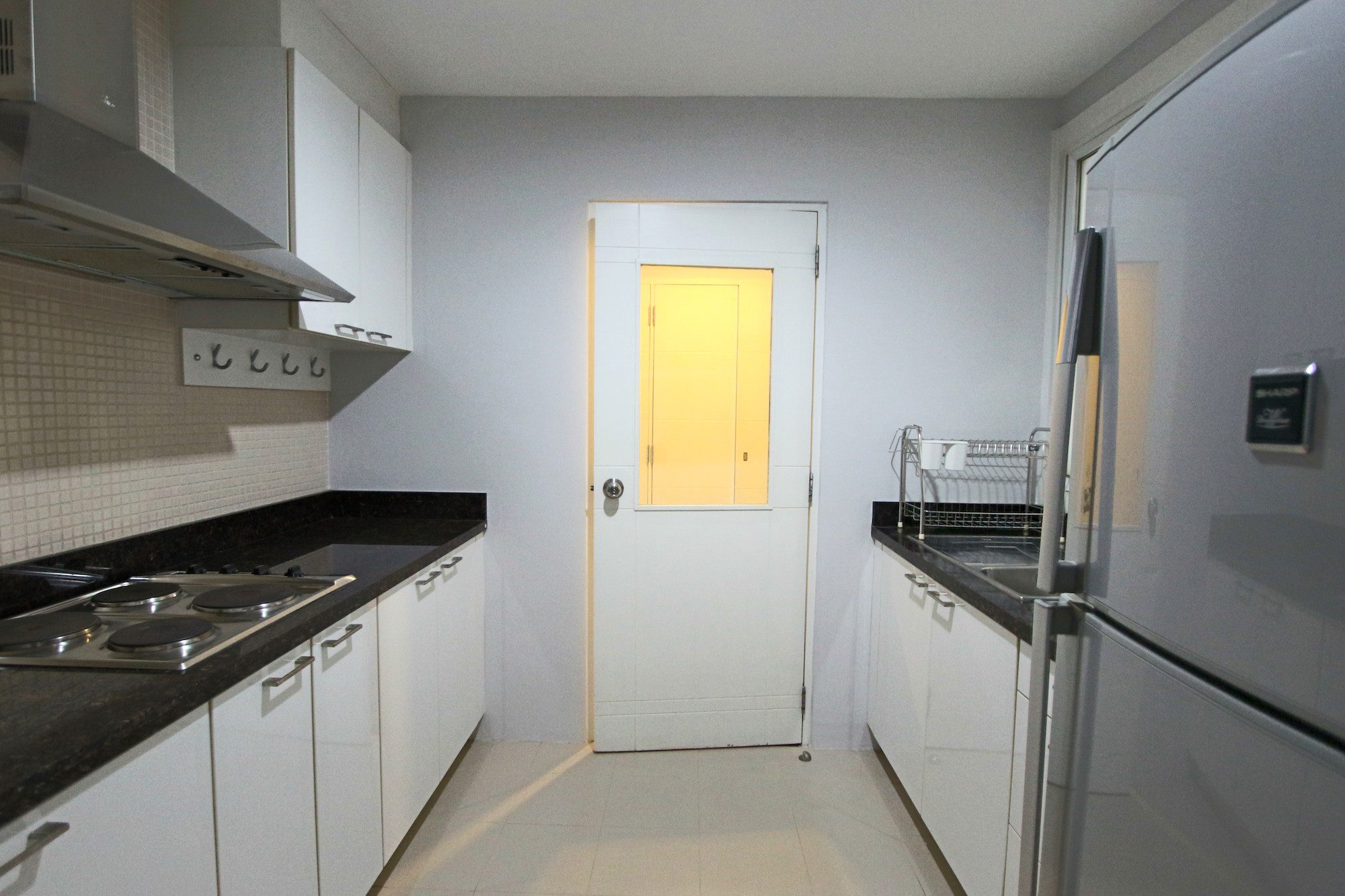 Facilities spacious two bedroom condo for rent in Phrom Phong include elevator, parking, 24-hours security, cctv, swimming pool, sauna, gym, wi-fi.
