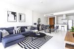 The open plan living area is lively with modern finishes and excellent for entertaining guests. The kitchen area is designed to suit all occasions from entertaining guests to relaxing after a day at work, complete with a gas stove and large island for prep work. The industrial styled lighting arrangements keep the vibe contemporary and makes for a cozy dining experience. All three bedrooms are well presented and maximized on space with optimal storage units and dedicated work space areas.
